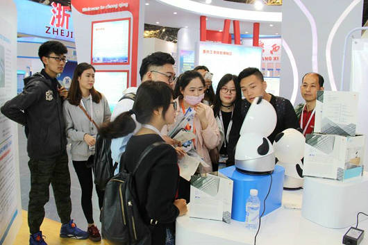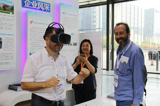 四川展团参展企业涵盖智能机器人、VR、生物医药、本地化服务、物流服务等技术创新领域,同时还有软件、服务外包、经开科技孵化等专业服务机构、钒钛专业园区等展示。其中VR教育和智能机器人演示的科技性、趣味性、互动性,吸引了大量中外客人的体验和咨询,给参展参会企业带来良好的客户资源和商业机会。