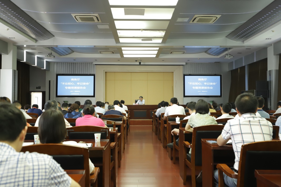 商务厅组织“不忘初心、牢记使命”专题党课报告会