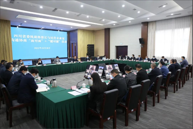 10月28日,第三次四川省委统战部部长与民营企业家沟通协商“面对面”+“键对键”活动在成都举行。省委常委、统战部部长赵俊民主持会议并讲话。他强调,要认真学习宣传贯彻党的二十大精神,坚定信心,迎难而上,努力为全省拼经济搞建设作出新的更大贡献。