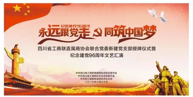 “永远跟党走,同筑中国梦。”热烈庆祝伟大的中国共产党96岁华诞!祝福四川省商务发展协会在党的正确引领下攻坚克难、蒸蒸日上!
