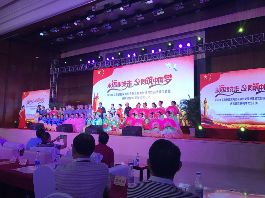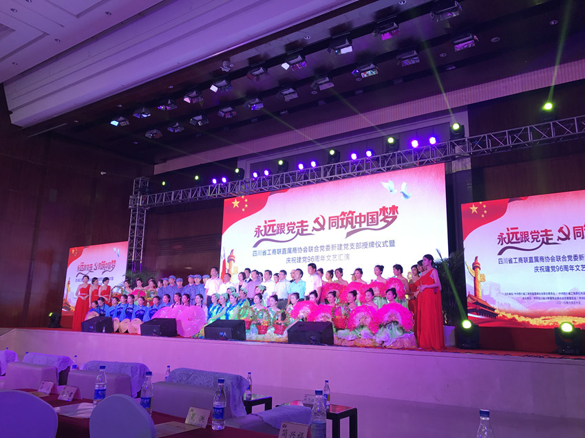 为庆祝建党96周年,四川省工商联直属商协会联合党委新建党支部授牌仪式暨庆祝建党96周年文艺汇演于6月30日在新华宾馆隆重举行。