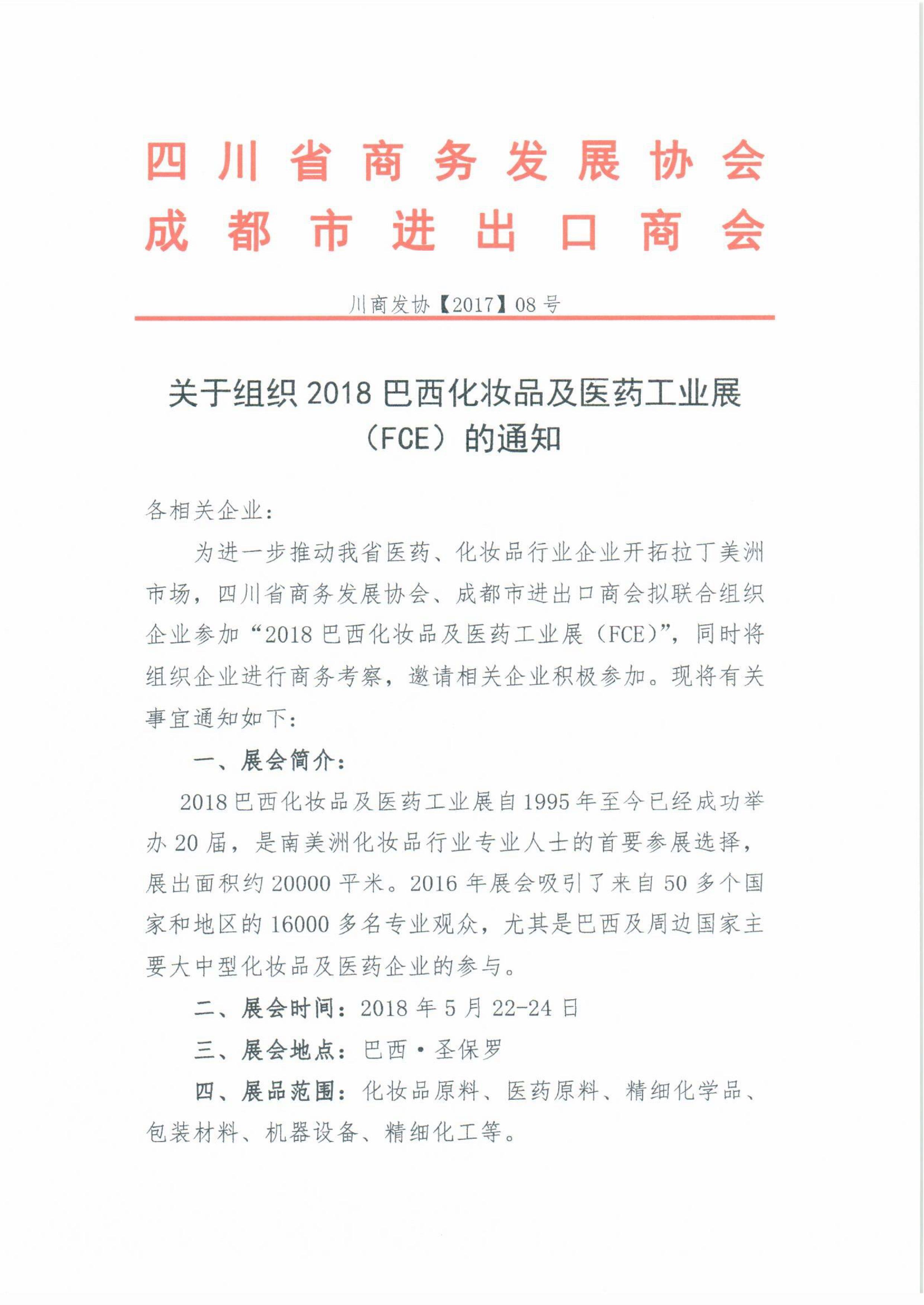 2018巴西化妆品及医药工业展参展通知