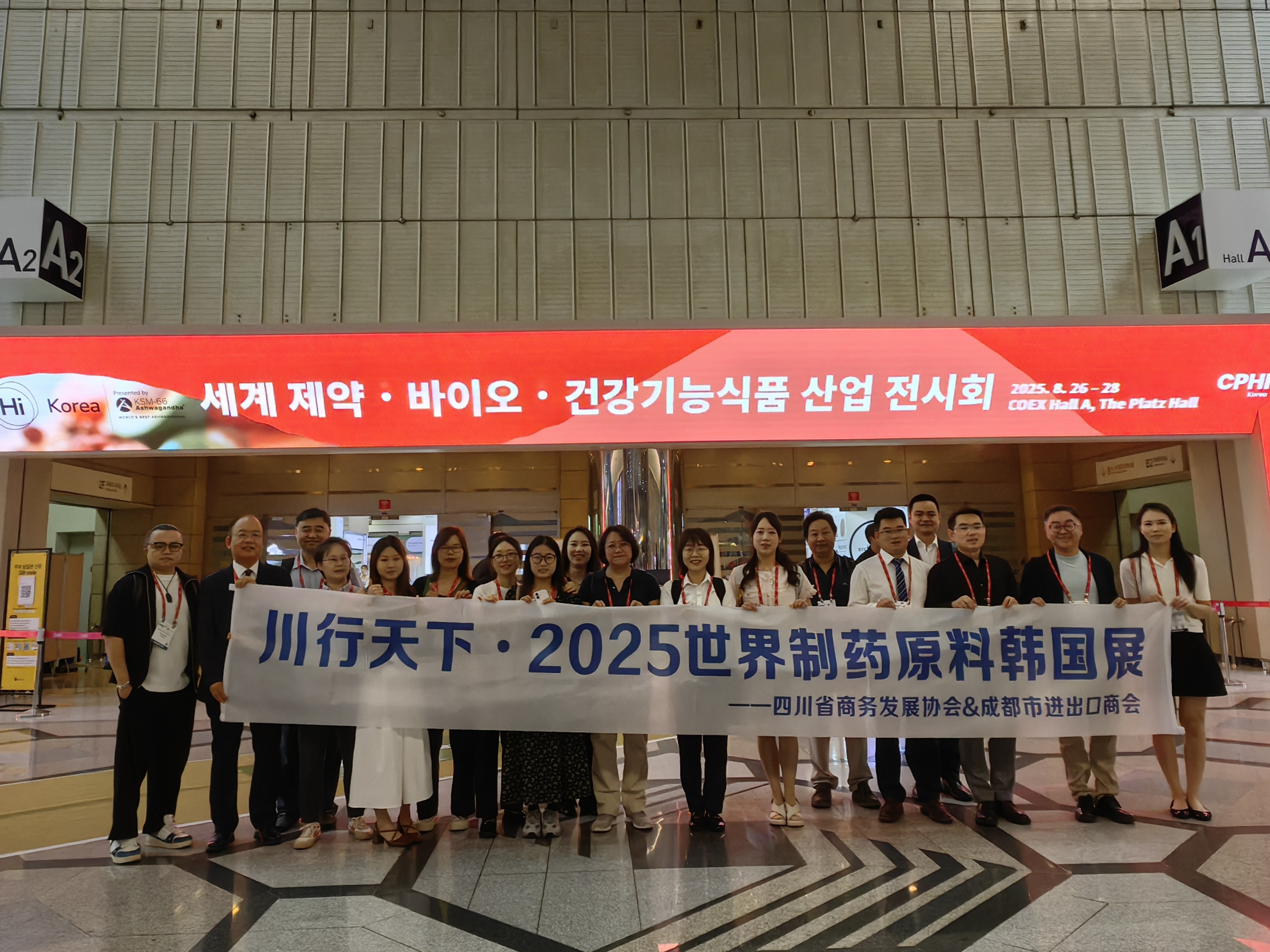为贯彻落实四川省商务厅“川行天下”政策,助力我省医药企业拓展国际舞台,我会在省商务厅和市商务局的指导与大力支持下成功组织省内医药领域企业,参加了于8月26日至28日在韩国COEX首尔会议中心举办的“世界制药原料韩国展”。本次展会与韩国国际健康产品原料展(Hi Korea)携手同台,实现了双展联动,为我省企业开辟东亚市场,打造了一场集食品、健康、天然、医药原料于一体的国际采购盛宴。
